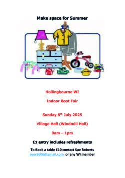 Come and pick up some bargains at the Hollingbourne Indoor Boot Fair.